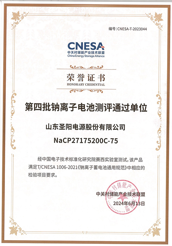 阜新圣阳股份荣登“全国第四批钠离子电池测评通过单位”榜单